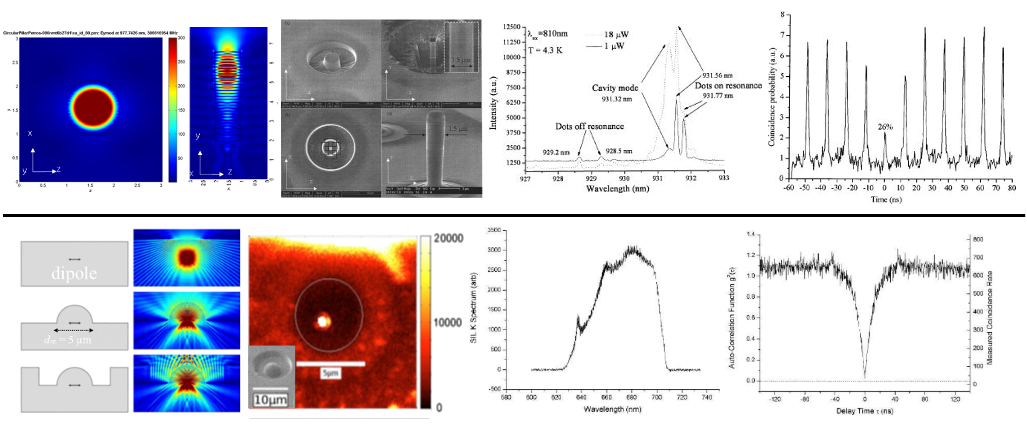Planck’s assumption of electromagnetic energy quantization and Einstein’s hypothesis of light quanta (or photons) introduced the wave-particle duality of light and led to the quantum effects, such as quantum vacuum fluctuations and quantum entanglement; novel technologies now make it possible for us to create and detect single photons on demand. In this project, we characterize experimentally the single photon emission from quantum dots, colour centre in diamond, and 2D materials, measuring second-order autocorrelation functions using single-photon counting in a confocal fluorescent microscope. We do this by engineering the defects, cavities, and waveguides at the wavelength scale to create devices with optimized structures for maximal photon emission and collection efficiency into useful modes.